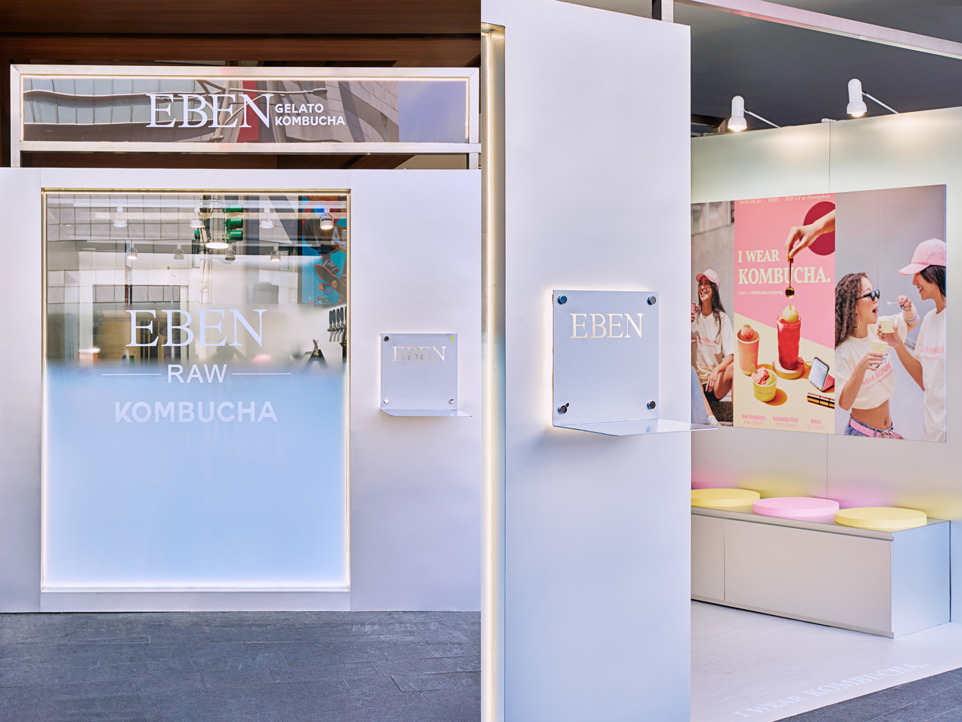 The pop-up store for EBEN Raw Kombucha explores a contemporary expression of wellness, translating the purity and vitality of kombucha into a clean, rational spatial language. Metallic finishes, glass, and acrylic are paired with LED lighting to define structure and lightness, creating a minimalist yet layered environment. As an extension of brand perception, the space establishes a clear and refined presence within the outdoor context of eslite spectrum nanxi.